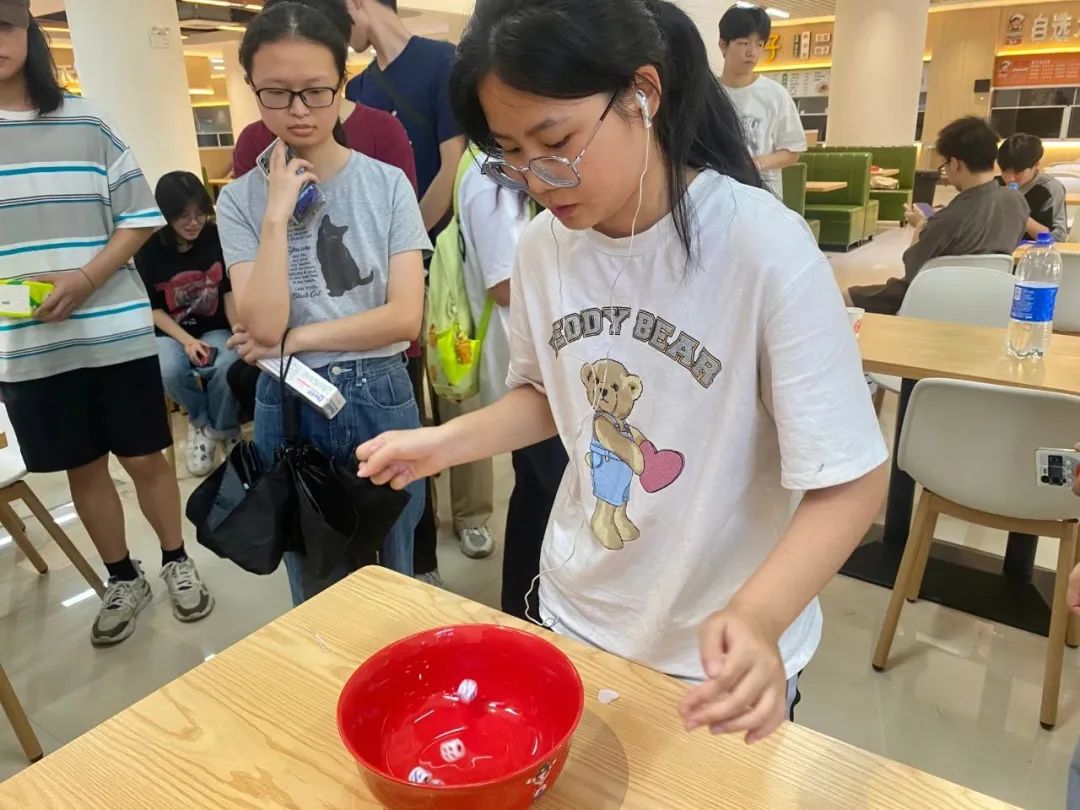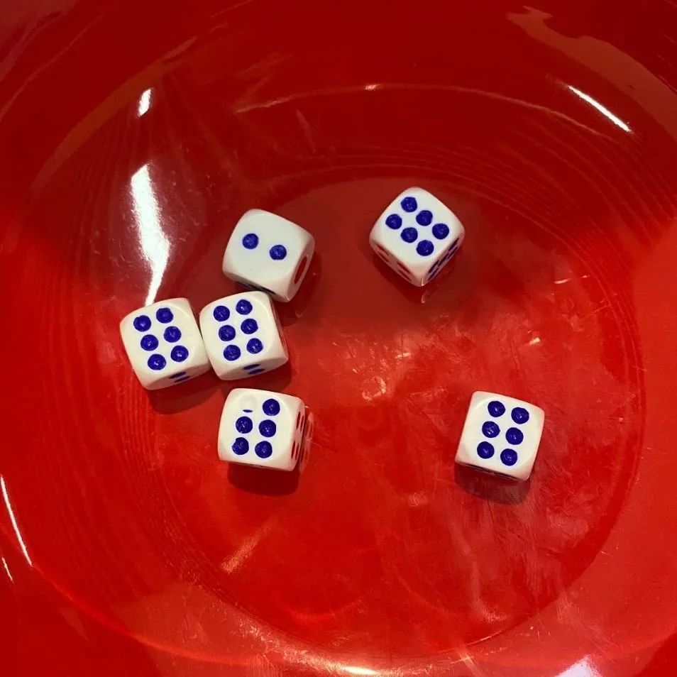 骰子在红碗中翻滚,